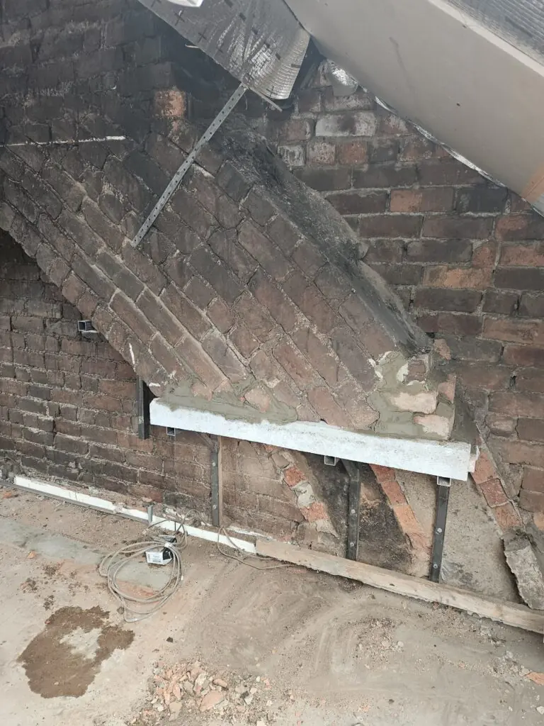 Our client wanted to extend her living space by creating a bedroom in the loft of this very old property. On inspection we found that there was very little structural support on the chimney, which risked damage to the building. Our team rectified the fault, and brought the support up to building regulations standards in just over a day. All done on time and within the clients budget.