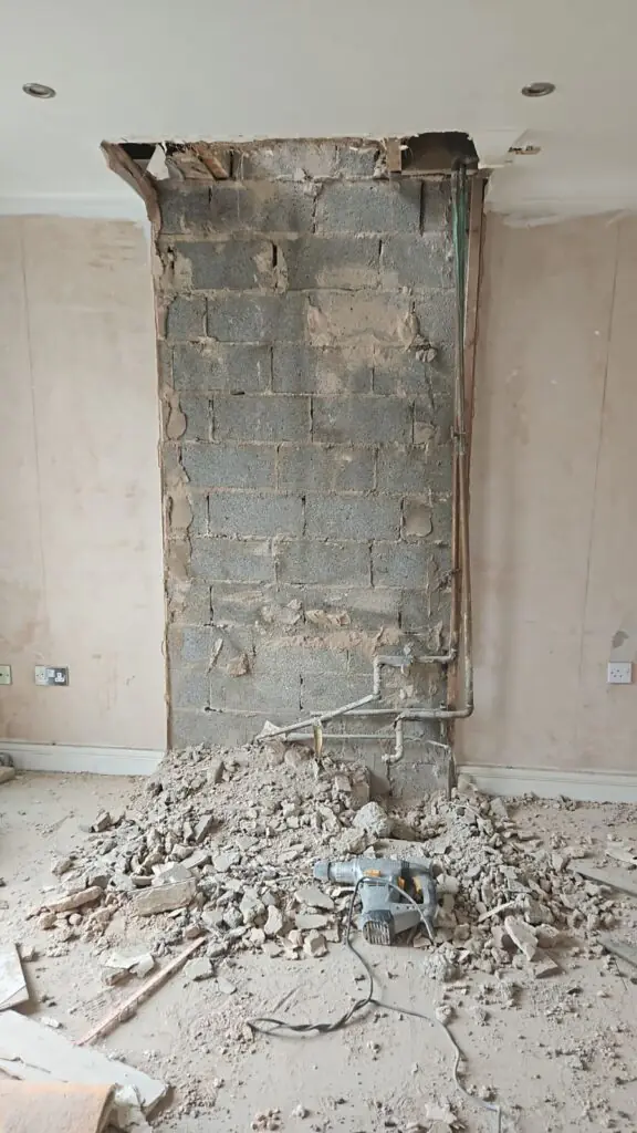 We recently removed a chimney breast for a client to give more space in the property. The project was completed in a day , and plasterers followed in the next day. All debris was cleared from the site at the end of the working day. The client was highly delighted with both the work and the cost.